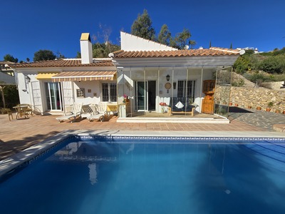 Villa Montana Vista is a one level, 3 bedroom, 2 bathroom property on a well established urbanisation, only a 5 minute drive to all amenities. The plot is fully walled and gated, with a concrete drivaeway and off road parking. There is a front terrace with a swimming pool where you can enjoy the views and a terrace to the right for alfresco dining. All of the garden to the back of the property is well established with palms, yucas and fruit trees. Inside the house consists of an open plan lounge, dining room and kitchen, 3 double bedrooms and 2 bathrooms. The lounge has a woodburner and patio door to a glazed terrace. The kitchen is light and has been wrapped recently giving it a new modern look. The bedrooms have fitted wardobes, AC units and ceiling fans. This is a turn key opportunity for someone looking for a holiday home in a popular area with amenities on your door stop!
