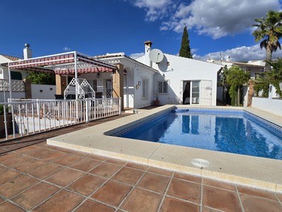 EXCLUSIVE - Villa Marion is a frontline, 2 bed, 2 bath property on a small urbanisation close to the village of Puente Don Manuel with all of its amenities. The house has a gated entrance and driveway for around 3 to 4 cars. There are several terraces, open and covered to enjoy the views of Lake Vinuela and the surrounding mountains. The swimming pool sits at the front of the plot and there is a pump room and useful workshop beneath it. The front door is just off the parking area and leads straight into the large kitchen. The lounge is light and spacious with patio doors that lead out onto the pool area. There is a free standing frieplace and AC invertor unit. The two bedrooms are a good size with double beds, fitted wardrobes and ceiling fans. The Master bedroom has a patio door to the outside terrace and its own private ensuite shower room. There is also a general shower room. This is a turn key opportunity with a FIXED PRICE of 289,500€. Move quick if you require a viewing! Completion from October 2025