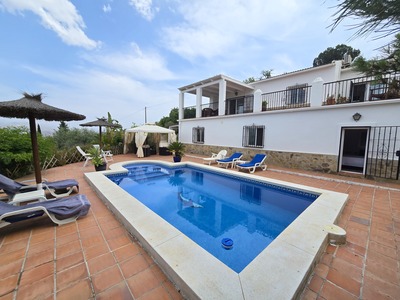 Prime Property - Villa Las Casillas is a unique 4-bedroom 3-bathroom property, located near to the village of Los Romanes with all its amenities. It sits on a plot of approximately 2,600 m2, with many olive and fruit trees. There are 2 driveways, one leading to the main house and the other to the apartment. On the top level, where you access the main house there is a large utility room, 2 useful storage rooms and a covered terrace, ideal for the hotter months. Inside, you walk into a light and open plan living area, with kitchen, lounge, and dining area. The kitchen has plenty of unit space, integrated appliances, and a breakfast bar. The lounge has a corner wood burner, central heating, ceiling fan, AC, and patio doors out onto an open and covered terrace where you can enjoy the views to the lake and mount Maroma. The 3 double bedrooms on this level have fitted wardrobes, ceiling fans, AC and central heating. There is a general bathroom, and the master bedroom has an ensuite shower room. On the lower level there is a self-contained apartment with lounge, kitchenette, bedroom, and shower room. The pool is on the lower level and is screened with trees and has lots of terracing around it for sunbathing. Beside it there is an attractive thatched seating area, where you can relax and get some shade. This is a charming property, in an idyllic area with all the added extras!