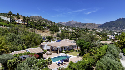 Cortijo Maroma is a very unique, one-off, country complex located below the Moorish Castillo de Salia looking across Alcaucin valley and up to Mount Maroma and its beautiful National Park. This property has many registered outbuildings including: a self-contained one bed casita, two detached ensuite bedrooms for B&B, a fully equipped outdoor kitchen and pool bar, changing rooms, an office, a workshop and many detailed features which complete this property’s charm and character. Condition is impeccible throughout and the main building is like new as every easpect has been renovated over the last 8 years from floor to ceiling, windows to doors, bathrooms to kitchen. This two bedroom property includes:one large master bedroom with ensuite plus a second bedroom, shower room, fully equipped kitchen, lounge with feature free standing wood burner plus a light dining room and reading area. The L - shaped covered terrace is over 85m2 with hand carved pillars made in Alhama. The extensive paths and gardens connect each building in a natural and practical way plus outdoor features such as the waterfall and pond, the boules pitch, the lawn, the heated pool with electric cover and exterior bar/ kitchen and BBQ area help establish Cortijo Maromas character. Many extras enhance the modern rustic style such as: solar panels for hot water, 11,000 litre water deposito, copper drain pipes, Distributed TV system for each room and outside by the bar and outside lounge. Oil central heating, AC in 4 bedrooms, electric shutters, landline telephone. There is parking for four cars plus a two car car port outside the main villa with electric entrance gates and the Casita has a separate entrance with sufficient parking. This property oozes character and much love has gone into its now established gardens and hideaways. There are too many extras to list but I can honestly say that Cortijo Maroma is one of the most individual and impressive recent reformes I have seen and you will see for your selves upon viewing.